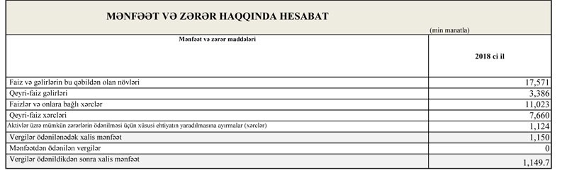 Daha bir bank gəlirlərinin artdığını və mənfəət açıqladı