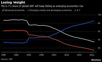 G - 7 ölkələrinin qlobal iqtisadiyyat içərisindəki payı getdikcə azalır.