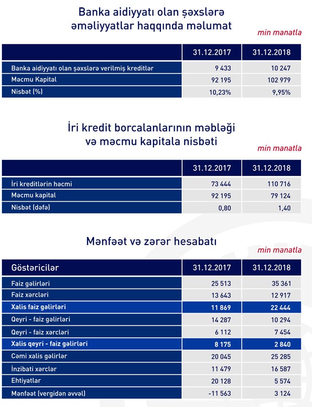 “Rabitəbank” ASC 2018-ci ili 3 milyon 124 min manat xalis mənfəət ilə başa vurub. Halbuki, Bank 2017-ci ili 11 milyon 563 min manat zərər ilə bağlamışdı.