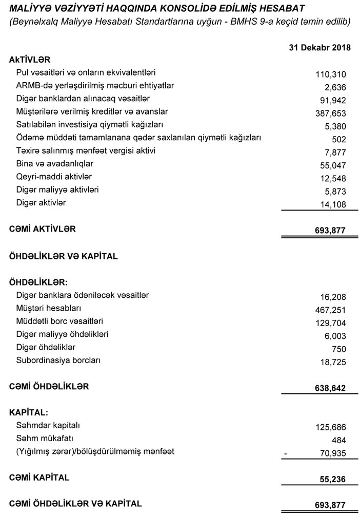 2018-ci il ərzində bankın depozit portfeli 22% artaraq, ilin sonuna 305 milyon manatı ötüb.