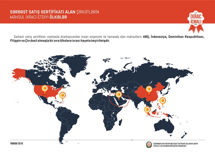 İcmalın yanvar sayında Azexport.az portalı vasitəsi ilə təqdim olunan Sərbəst Satış Sertifikatının Azərbaycan şirkətlərinin yeni bazarlara çıxış imkanlarını artırması barədə də geniş məlumat verilib.