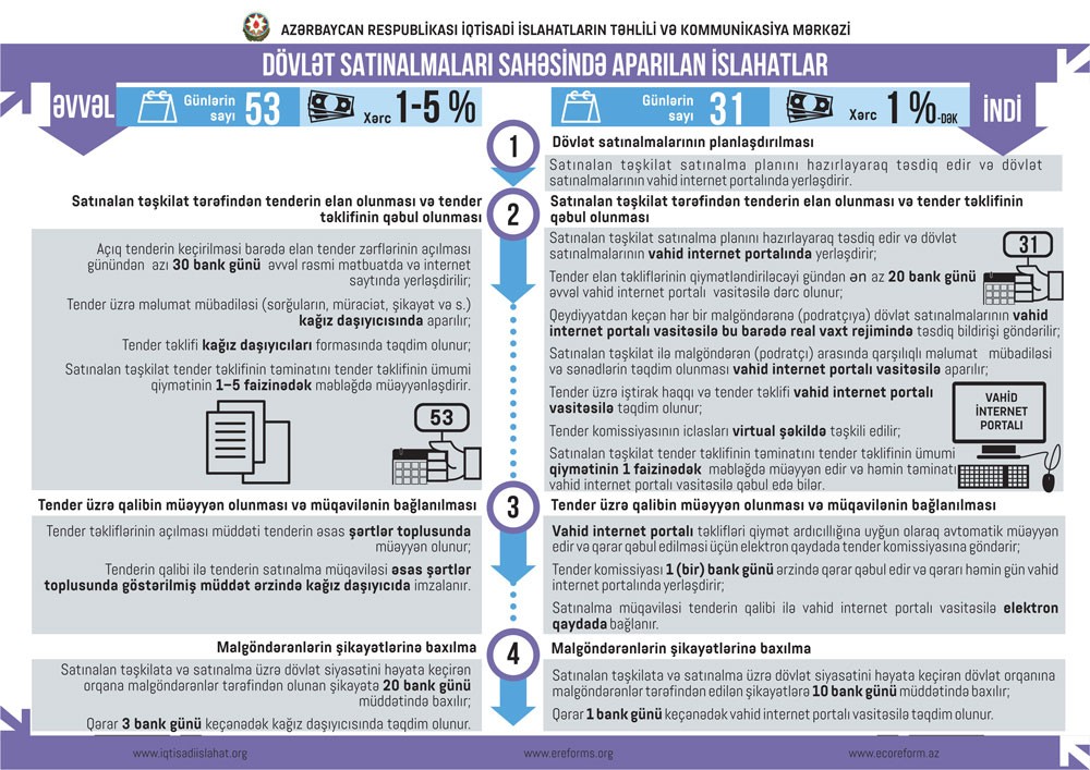 “İslahat icmalı” ilə aşağıda təqdim olunan link vasitəsi ilə tanış ola bilərsiniz: http://iqtisadiislahat.org/store//media/documents/islahatlar_icmali/2019/fevral/DB_2019_Satinalmalar.pdf