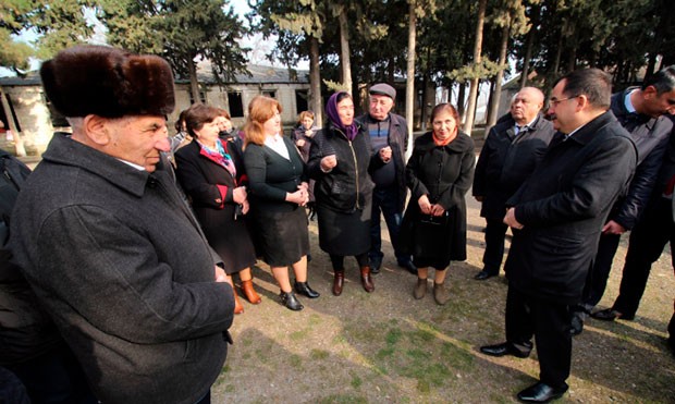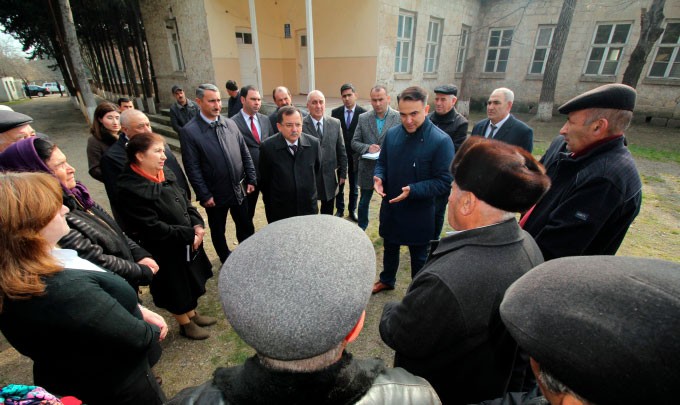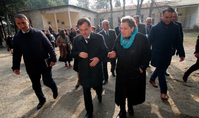 Sonra bağçanın həyətində sakinlərlə görüşüblər.