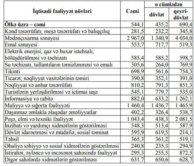Azərbaycanda ən çox maaşın olduğu sahələr - CƏDVƏL