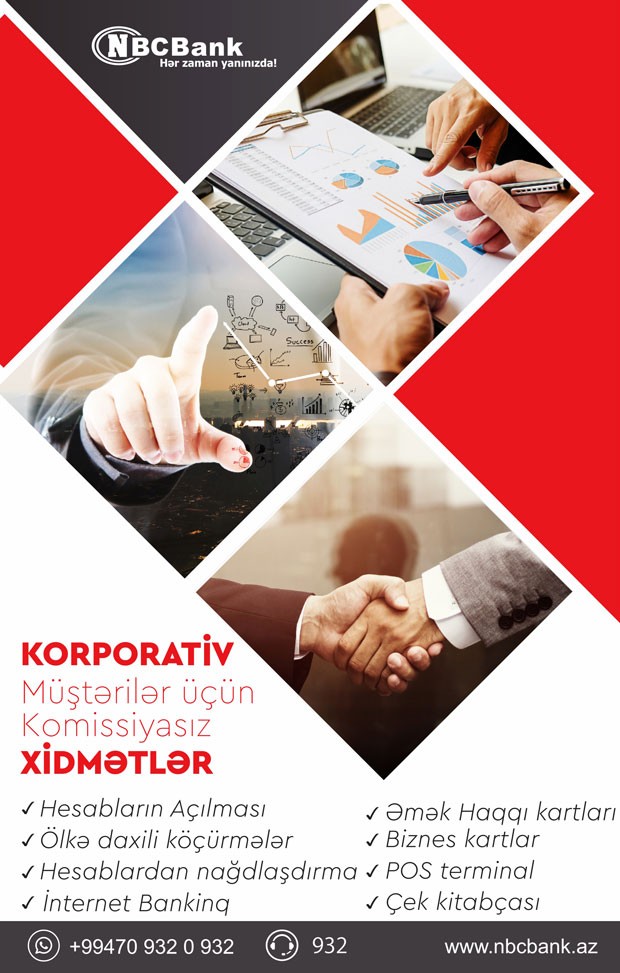 (®) NBCBankla əməkdaşlıq etmək istəyən yeni Hüquqi Şəxslər və Fərdi Sahibkarlar üçün əsl fürsət! Tam 1 ay KOMİSSİYASIZ təklif olunan xidmətlərdən yararlanmağın əsl vaxtıdır.
