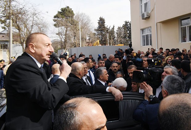 "Şamaxıda baş vermiş zəlzələ nəticəsində dağılmış bütün evlər yenidən tikiləcək, bərpa ediləcək. Bilirsiniz ki, zəlzələdən dərhal sonra mən Şamaxıya gəldim, vəziyyətlə tanış oldum. Dərhal göstəriş verdim ki, evlər qısa müddət ərzində bərpa edilsin, tikilsin. Bu gün artıq biz ilk evlərin, o cümlədən Saray nənənin evinin açılışını etdik. Bir neçə başqa ev də tikilib. İndi çoxmənzilli yeni binanın təməli qoyulacaqdır. Şamaxı, Ağsu, İsmayıllı rayonlarında minlərlə ev tikiləcək və yenidən bərpa ediləcək. Azərbaycan dövləti hər zaman öz vətəndaşının yanındadır. Bizim sosial siyasətimiz güclü siyasətdir və zəlzələdən ziyan görmüş bütün evlər dövlət vəsaiti hesabına tikiləcək və bərpa ediləcəkdir.