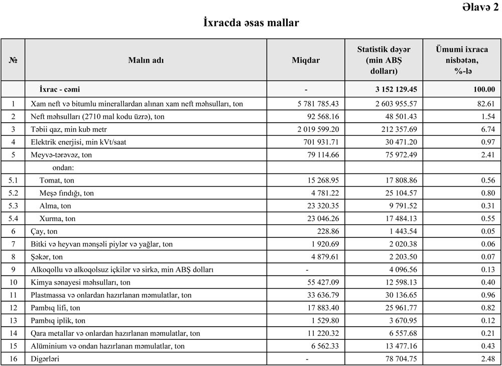 Ən çox ixrac və idxal etdiyimiz mallar
