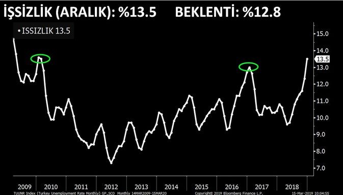 Türkiyə Statistika Komitəsinin (TÜİK) məlumatlarına görə, 2017-ci illə müqayisədə 2018-ci ildə Türkiyə daxilində 15 və daha yuxarı yaşda olan işsizlərin sayı 1 milyon 11 min nəfər artaraq 2018-ci ilin Dekabr ayında 4 milyon 302 min nəfərə çatıb.