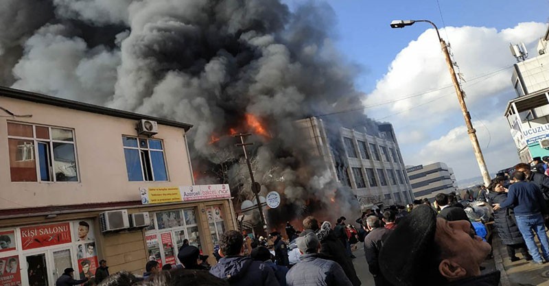 Yanğın nəticəsində ticarət mərkəzinin binası tam yararsız hala düşüb.