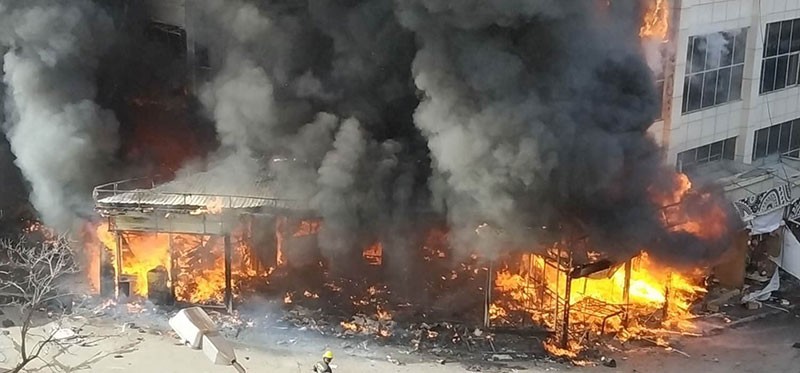 Alov şiddətlənərək 8-ci kilometr bazarındakı bir neçə obyekti də bürüyüb.