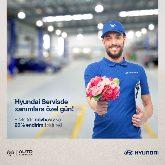 8 Mart Beynəlxalq Qadınlar Gününə özəl Hyundai sahib olan qadınlar servisdə növbəsiz və endirimli xidmət alacaqlar.