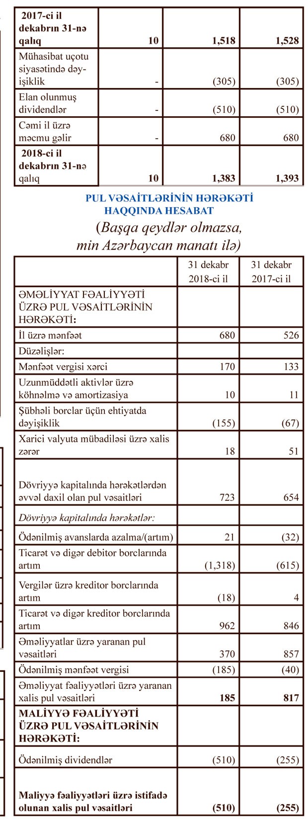 Şirkətin maliyyə hesabatına görə, bu, 2017-ci illə müqayisədə 29,3% çoxdur.