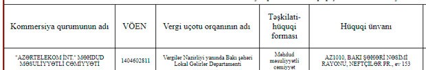 Vergilər Nazirliyi martın 13-də "Azərtelekom İnt" MMC-ni qeydiyyata alıb.