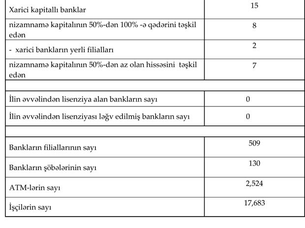 Fəaliyyət göstərən 30 bankın filiallarının sayı 509, şöbələrinin sayı 130, ATM-lərin sayı 2 524 olub. Bank sektorunun işçi heyətinin sayında artım fevral ayında da davam etmişdir. Belə ki, 2019-cu ilin fevral ayında işçi sayı 0.5% (95 nəfər) artaraq 17 683 nəfər təşkil edib.