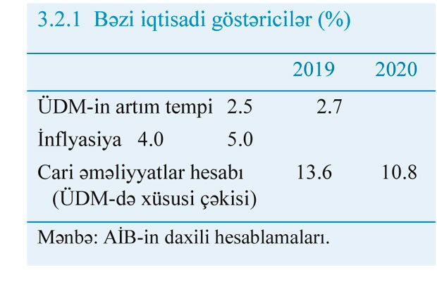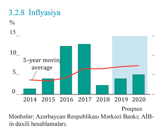 Əməkhaqlarının artımı fonunda inflyasiyanın 2019-cu ildə 4.0%- dək yüksələcəyi, sürətli artımın da daxili tələbata müsbət təsir göstərməsi səbəbindən isə, 2020-ci ildə 5.0% səviyyəsində qərarlaşacağı proqnozlaşdırılır.