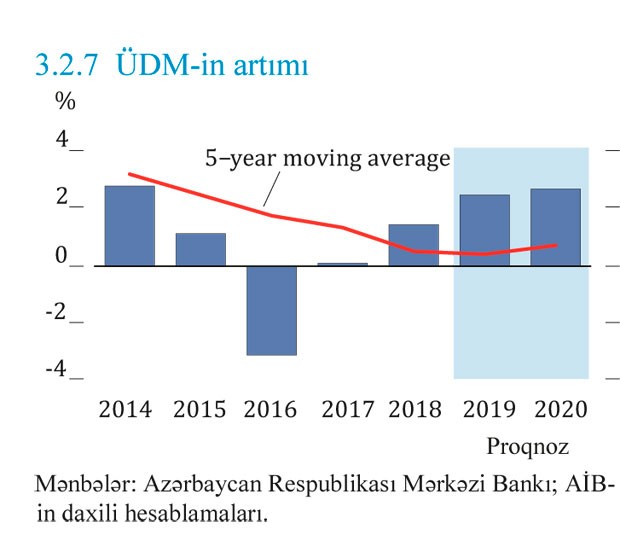 “Marja” xəbər verir ki, Hesabatın Azərbaycan Üzrə Fəslində bildirilir ki, dövlət investisiyaların və istehlakın artması nəticəsində iqtisadi artım tempinin 2019-cu ildə 2.5%-dək güclənəcəyi, Şah Dəniz 2 meydanında qaz hasilatı sürətləndikcə isə 2020-ci ildə 2.7%-ə çatacağı gözlənilir.