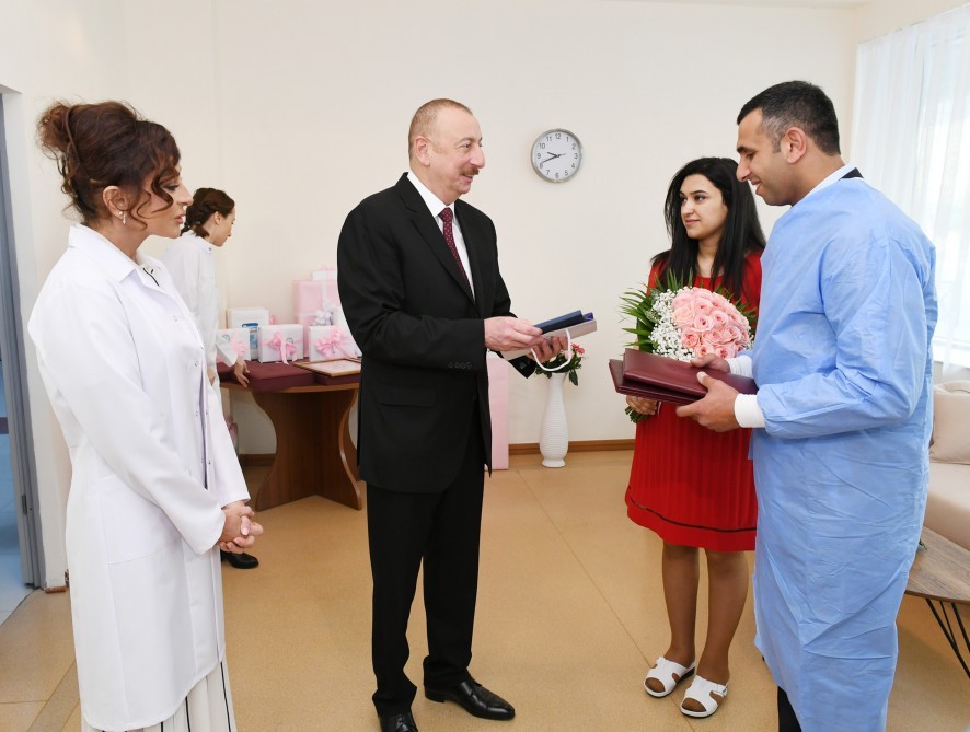 Prezident İlham Əliyev: Bu mərkəz çoxdan fəaliyyət göstərirdi. Təqribən 10 il bundan əvvəl əsaslı şəkildə yenidən quruldu, təmir olundu və indi ölkəmizin aparıcı tibb mərkəzlərindən biridir. Son illərdə ölkəmizin hər bir yerində doğum evləri, doğum şöbələri, xəstəxanalar tikilir. Yəni, indi tibbi xidmət almaq üçün bütün şərait var.