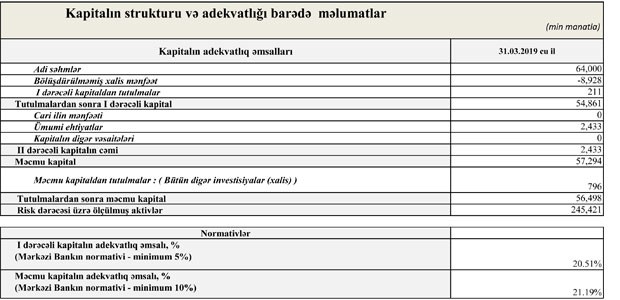 “NBC Bank” 2019-cu ilin 1-ci rübü üzrə maliyyə göstəricilərini açıqlayıb.