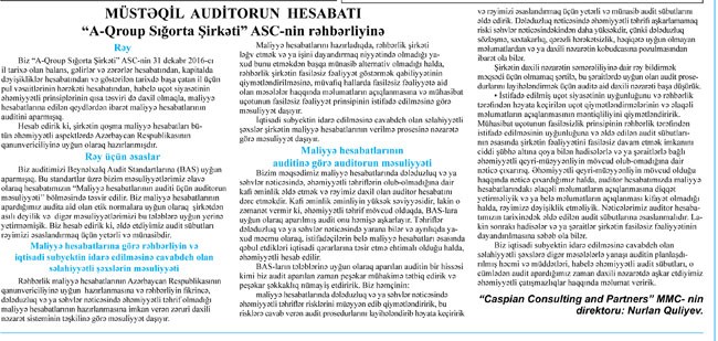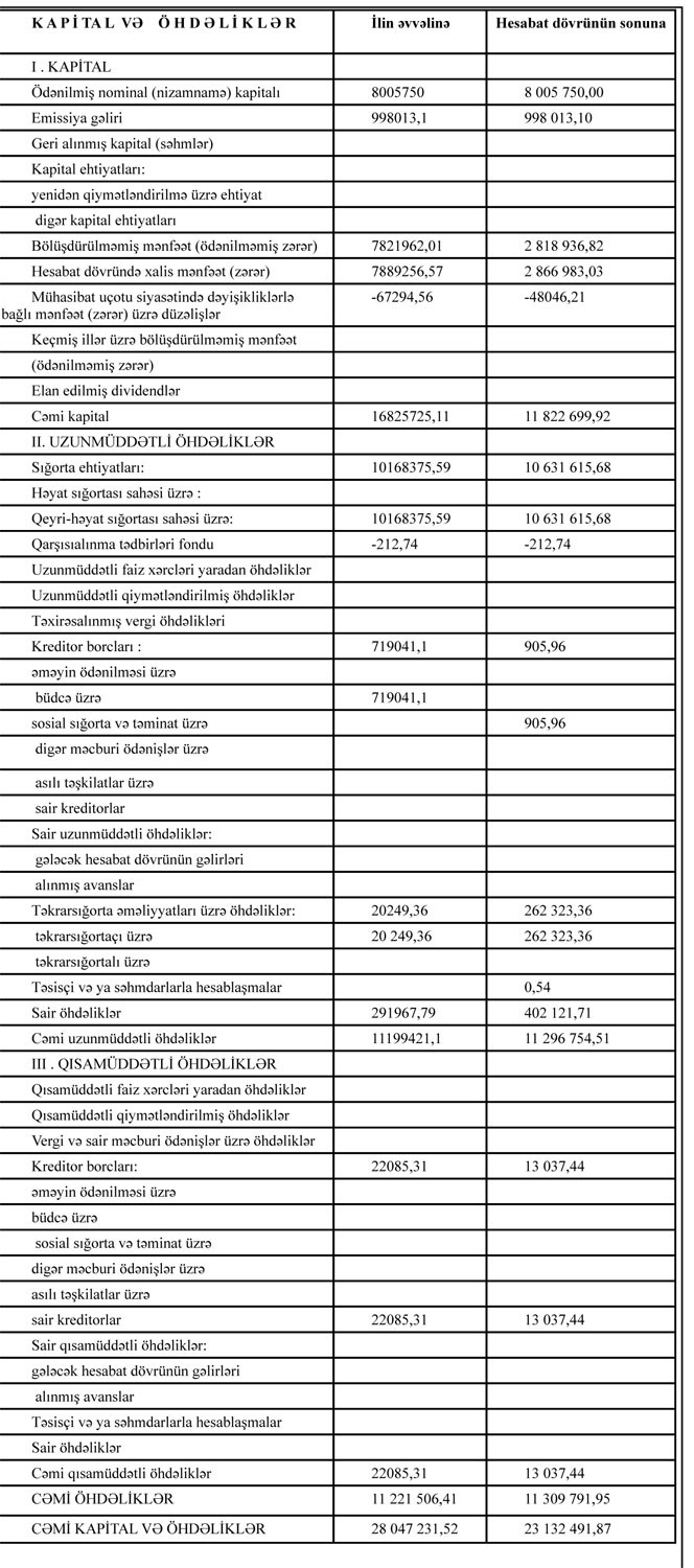 “A-Qroup Sığorta Şirkəti” ASC-nin 2016-cı il dekabrın 31-nə balans hesabatı
