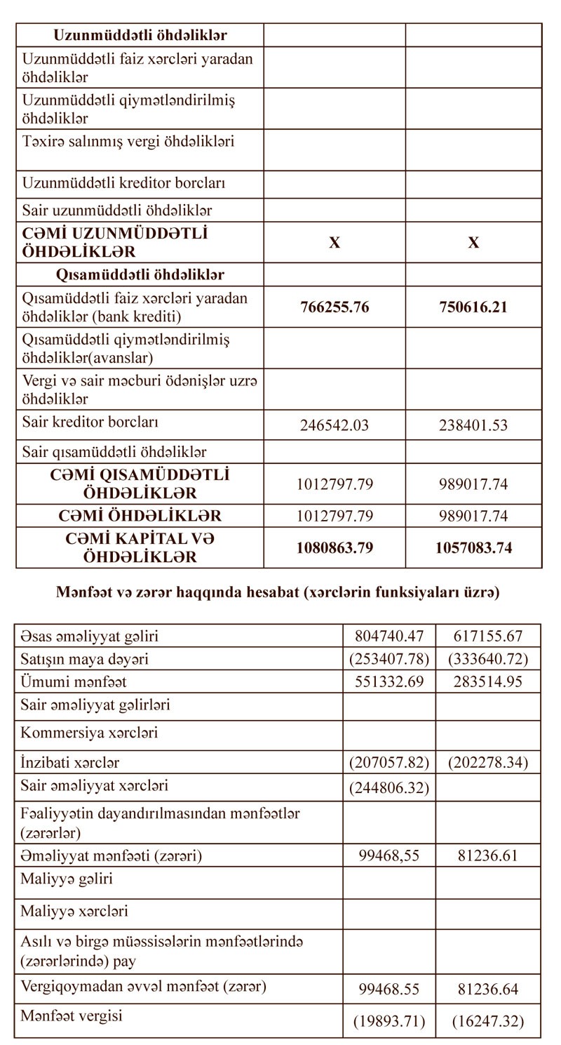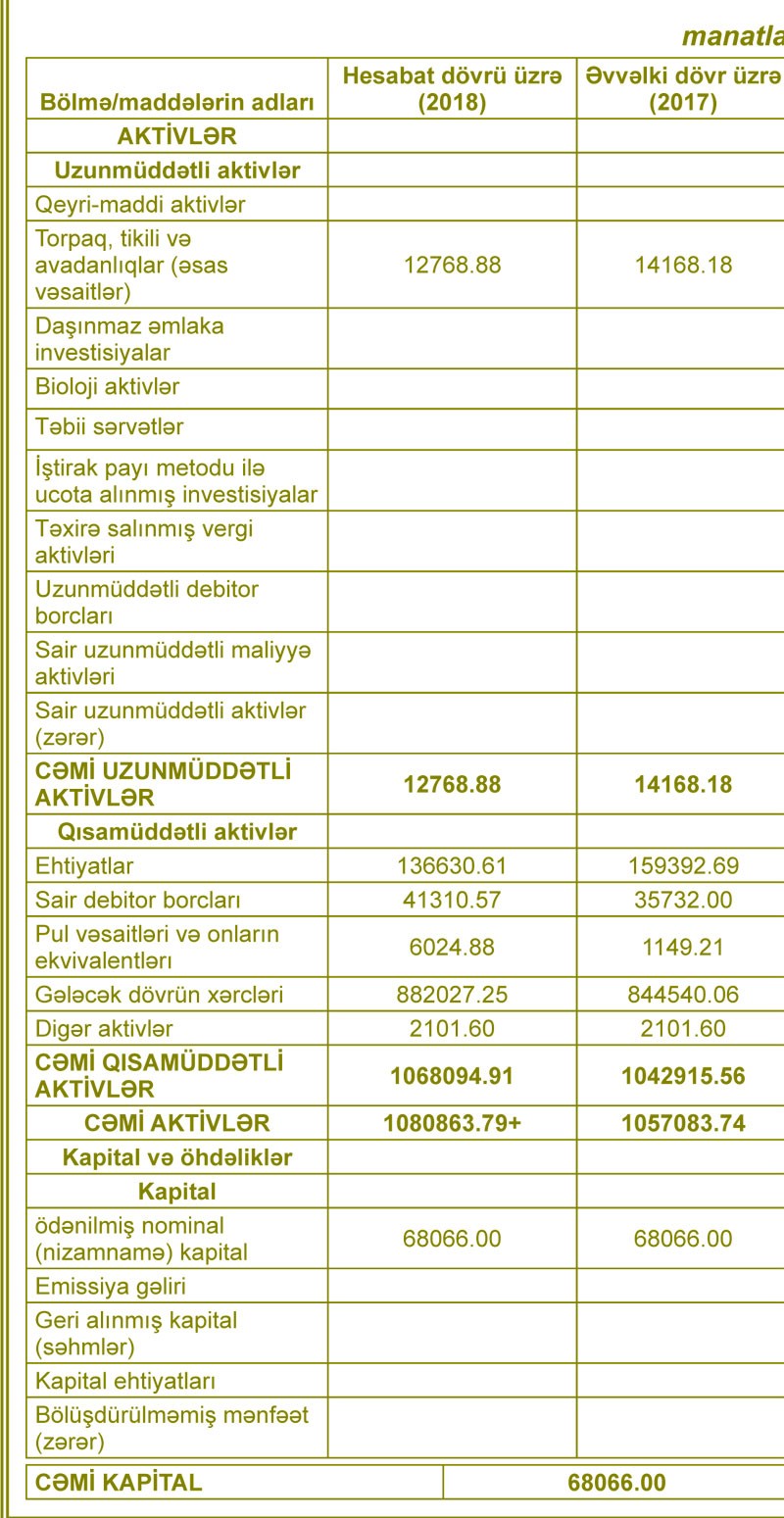 “BAKI POLAD BURAZLAR” ASC-nin 2018-ci il dekabrın 31-nə mühasibat balansı
