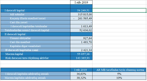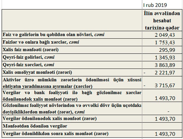 “Bank VTB Azərbaycan” ASC 2019-cu ilin 1-ci rübünü 1 milyon 494 min manat xalis mənfəət ilə başa vurub, amma bu xalis mənfəət biznesin inkişafından deyil, ehtiyatın azad olmasından qaynaqlanır.