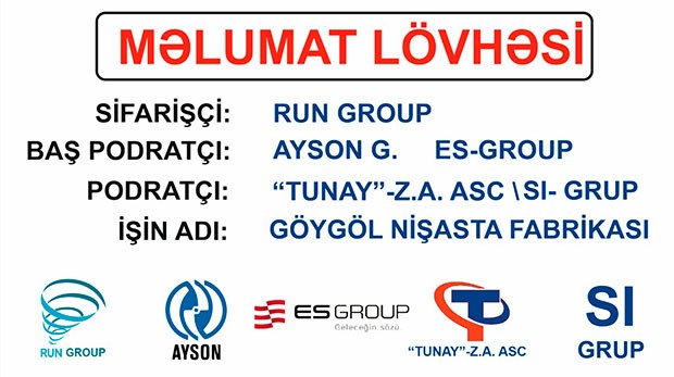 "Zavodun tikintisi üzrə podratçı "Tunay" - Z.A. ASC-dir. Artıq ərazidə abadlıq işlərini görmüşük, eyni zamanda bir neçə binanın bünövrəsini qazmışıq və 5 hekar ərazini yararsız torpaqdan təmizləmişik. "Run Group" ilə bağladığımız müqavilənin dəyəri 43 milyon manatdır. Bu məbləğ dəyişə də bilər. Zavodun avadanlıqlarının quraşdırılması üçün də təkliflərimizi də "Run Group" şirkətinə təqdim etmişik".