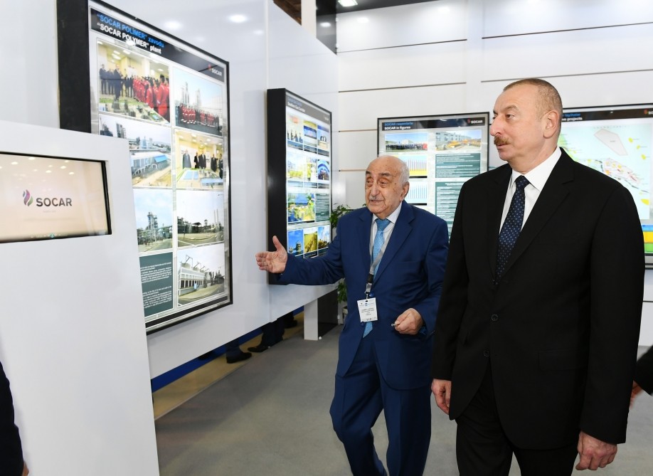 Prezident İlham Əliyev BP-Azərbaycanın stendində də oldu. Dövlətimizin başçısına burada AÇG-nin 25 illiyi ilə bağlı uğurlar və növbəti 25 illik plan barədə məlumat verildi. BP-Azərbaycan ölkənin və Cənubi Xəzər regionunun aparıcı əməliyyatçısı kimi fəaliyyət göstərir. Bu müddətdə BP təhlükəsiz və səmərəli əməliyyatlar həyata keçirərək ölkənin bir sıra mühüm neft-qaz layihələrini uğurla təhvil verib. Bu layihələrə “Azəri-Çıraq-Dərinsulu Günəşli” neft yatağı, “Şahdəniz” qaz və kondensat yatağı, üç ixrac boru kəməri, həmçinin dayazsulu “Abşeron” və “Şəfəq-Asiman” və D-230 geoloji-kəşfiyyat strukturları daxildir. İndiyədək BP tərəfdaşları ilə birgə Azərbaycanın neft-qaz layihələrinə 72 milyard dollardan artıq sərmayə qoyub. BP-nin Azərbaycanda 2900-a yaxın ixtisaslı işçisi var. Onların 90 faizi Azərbaycan vətəndaşlarıdır.