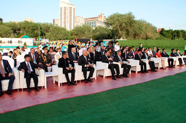 Çin xarici işlər nazirinin müavini Can Hanhuy Çin hökuməti adından əlamətdar hadisə münasibətilə təbriklərini çatdırıb. Azərbaycan səfirliyi üçün binanın Pekinin ən yaxşı ərazilərindən birində ayrılmasının Çin-Azərbaycan münasibətlərinin yüksək səviyyədə olmasından xəbər verdiyini bildirən nazir müavini xalqlarımızın dostluğunun köklərinin uzaq keçmişə gedib çıxdığını, tarixi İpək Yolunun bizim ölkələri birləşdirdiyini diqqətə çatdırıb. Hələ XIII əsrdə dahi Azərbaycan şairi və mütəfəkkiri Nizami Gəncəvi “Yeddi gözəl” poemasında Çin gözəlini vəsf edib.