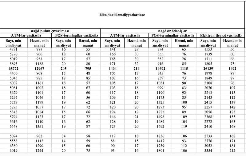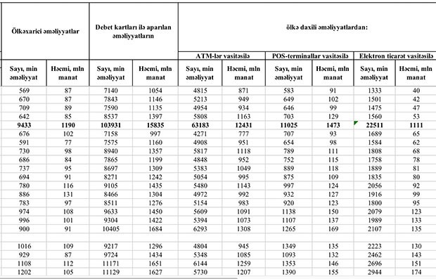 Martda əməkhaqqı kartlarının sayı 18 min ədəd artaraq 2 milyon 96 min ədədə, əməkhaqqı və sosial kart olmayan digər debet kartlarının sayı 84 min ədəd artaraq 1 milyon 308 min ədədə, kredit kartlarının sayı isə 9 min ədəd artaraq 795 min ədədə yüksəlib.