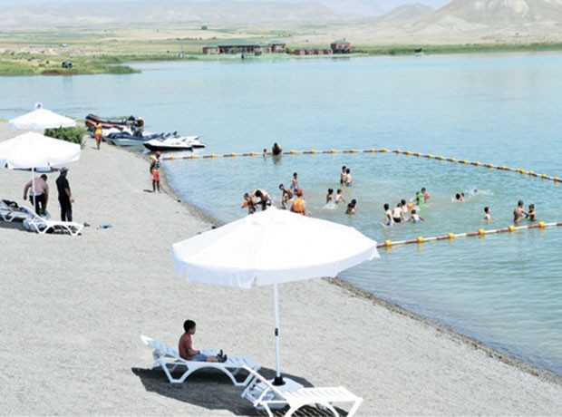 Su anbarında çimərlik yaradılıb