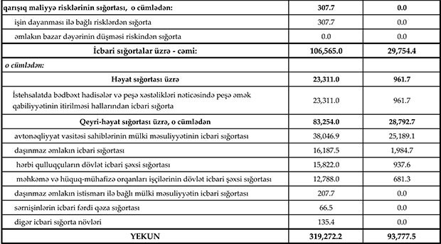 5 ay ərzində könüllü sığorta bazarı üzrə haqlar 212.7 milyon manat, ödənişlər isə 64 milyon manat təşkil edib. İcbari sığorta bazarı üzrə haqlar 106.6 milyon manat, ödənişlər isə 29.8 milyon manat olub.