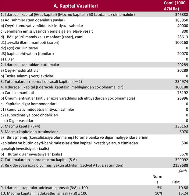 Ötən ilin sonu ilə müqayisədə "Kapital Bank"ın qiymətli kağızlara investisiyaları 2,1 dəfə artaraq 698 milyon 324 min manata yüksəlib.
