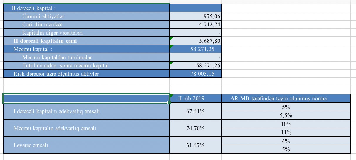 30 İyun 2019-cu il tarixində “VTB Bank Azərbaycan” 58 milyon 271 min manat məcmu kapitala malik olub.