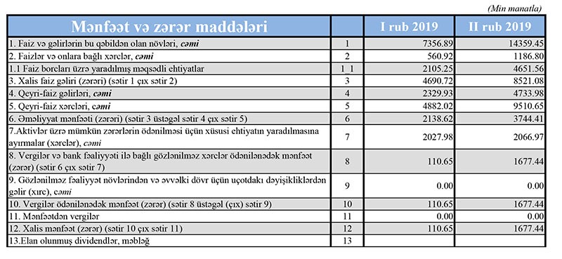 “Marja” Bankın rüblük hesabatlarına istinadən xəbər verir ki, 2019-cu ilin yanvar-iyun dövründə “AFB Bank”ın cəmi faiz və qeyri-faiz gəlirləri 19 milyon 93 min manat (14 milyon 359 min manatı faiz, 4 milyon 734 min manatı qeyri-faiz gəlirləri), cəmi xərcləri 15 milyon 348 min manat təşkil edib. Gəlirlər xərcləri üstələdiyindən Bankın 3 milyon 744 min manat əməliyyat mənfəəti olub. “AFB Bank” əməliyyat mənfəətinin 2 milyon 67 min manatını aktivlәr üzrә mümkün zәrәrlәrin ödәnilmәsi üçün xüsusi ehtiyatın yaradılmasına ayırdığından cari ilin 1-ci yarısını 1 milyon 677 min manat xalis mənfəət ilə bağlayıb.