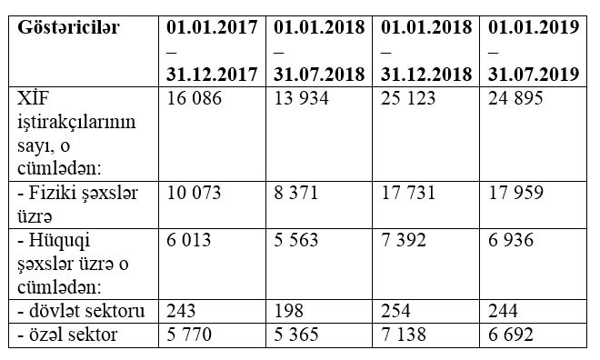 2019-cu ilin 7 ay ərzində 24 895 xarici iqtisadi fəaliyyət iştirakçısının 17 959-u fiziki şəxslər, 6 936-sı hüquqi şəxslər olub. Ötən ilin eyni dövründə xarici iqtisadi fəaliyyət iştirakçılarının 6 936-sı fiziki, 5 563-ü hüquqi şəxs olmuşdu. Ötən ilin 7 ayı ilə müqayisədə bu il fiziki şəxslərin sayı 11023 şəxs və ya 2,5 dəfə, hüquqi şəxslərin sayı isə 1373 və ya 20% artıb.