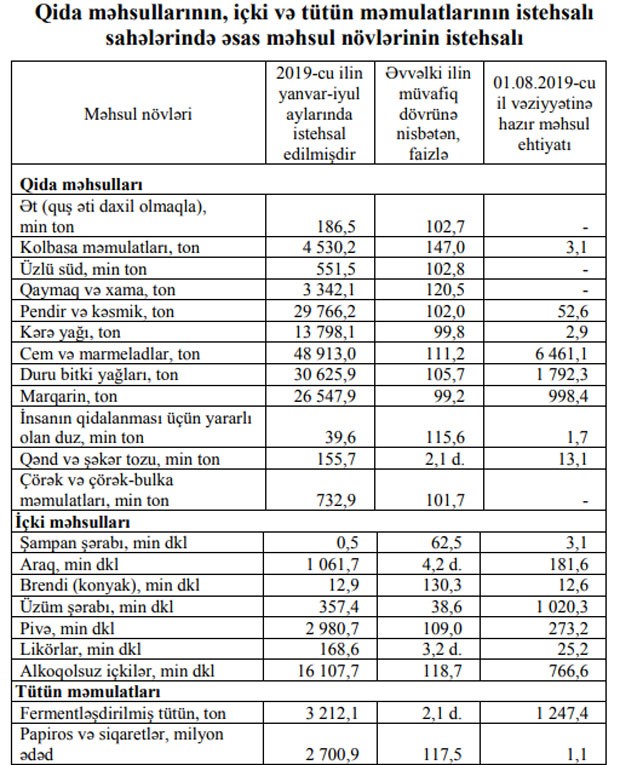 “Marja” Dövlət Statistika Komitəsinin aylıq hesabatına istinadən xəbər verir ki, 2019-cu ilin yanvar-iyul aylarında 155,7 min ton qənd və şəkər tozu istehsal istehsal edilmişdir. İstehsal əvvəlki ilin müvafiq dövrünə nisbətən 2,1 dəfə artıb.