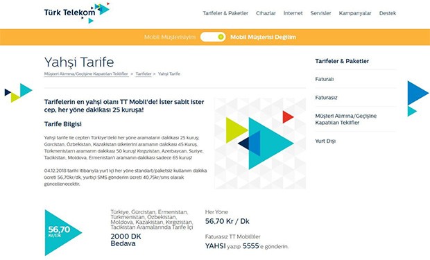 Türkiyənin aparıcı telekommunikasiya şirkəti "Türk Telekom" mobil telefon abunəçiləri üçün tarif paketi istifadəyə verib.