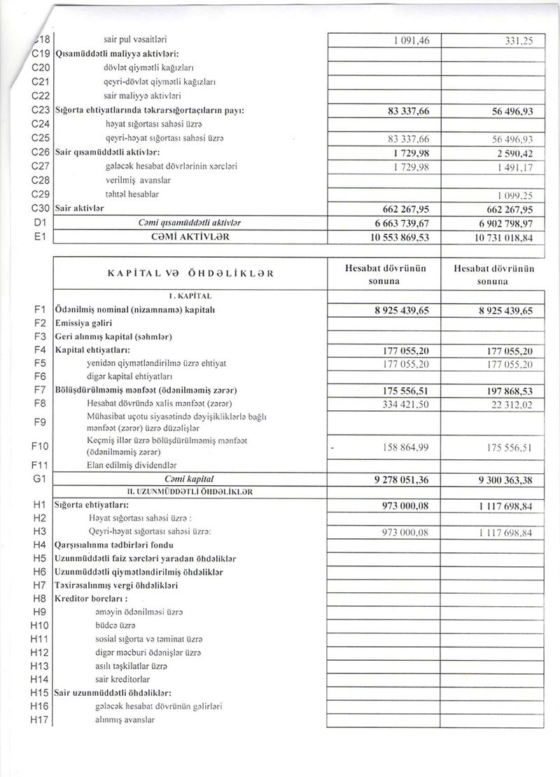 Müqayisə olunan dövürlər üzrə, toplanan sığorta haqları 581 min manatdan 522 min manata düşüb, sığorta ödənişləri isə eyni səviyyədə qalıb (135 min manat).