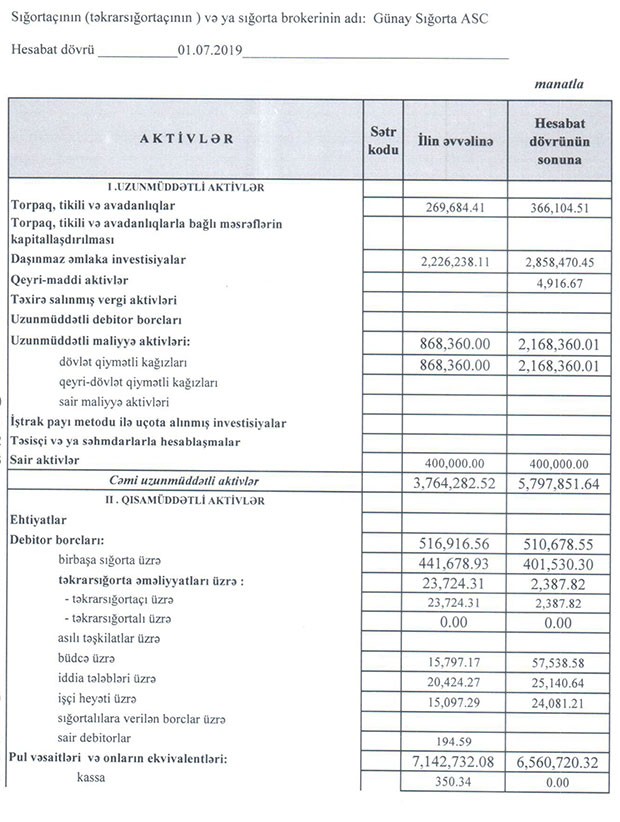 Müqayisə üçün qeyd edək ki, 2018-ci ilin yanvar-iyun dövründə “Günay Sığorta”nın cəmi gəlirləri 4 milyon 478 min manat, cəmi xərcləri 4 milyon 202 min manat, əməliyyat mənfəəti 276 min manat təşkil etmişdi. Ötən il “Günay Sığorta”nın cəmi gəlirlərinin 936 min manatını sığorta ehtiyatından azadolma təşkil etmişdi.