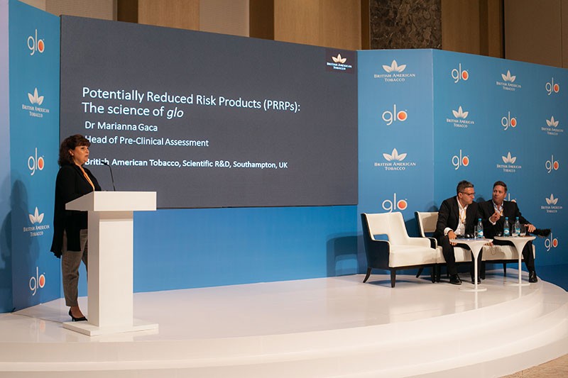 “British American Tobacco” şirkətlər qrupunun Baş elmi mütəxəssisi Marianna Qaça bildirmişdir ki, “Konseptual baxımdan glo™potensial olaraq daha az riskli məhsul kimi işlənib hazırlanmışdır, onun istifadəsi zamanı tütün yanmır, qızdırılır. Nəticədə ayrılan toksinlərin miqdarı əhəmiyyətli dərəcədə azalır, istehlakçı yenə dəistifadədən istədiyi dadı və həzzi alır. Bu vacibdir, çünki bir çox siqaret çəkənlər nikotin istifadəsini və onunla bağlı ritualı atmaq istəməsə belə, siqaret çəkməyin risklərindən narahatdırlar.”