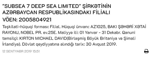 Avqust ayında Britaniyanın "Subsea 7 Deep Sea Limited" şirkətinin filialı Azərbaycanda qeydiyyatdan keçib.