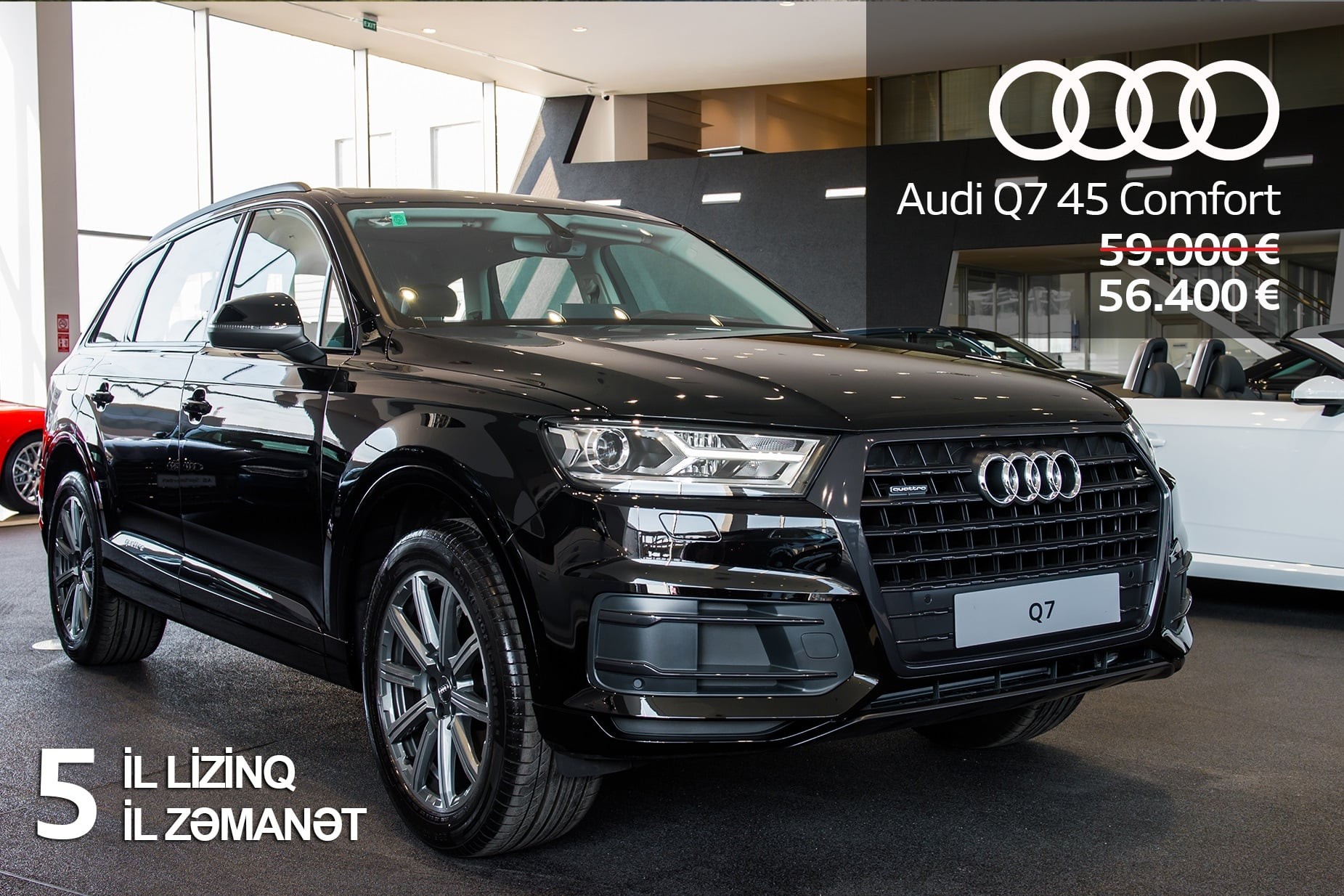 Sentyabrın 30-dək endirimlərdən yararlanmağa tələsin. Audi Q7 45 Comfort modelini 56 000 avroya yox 53 900 avroya əldə edə bilərsiniz.