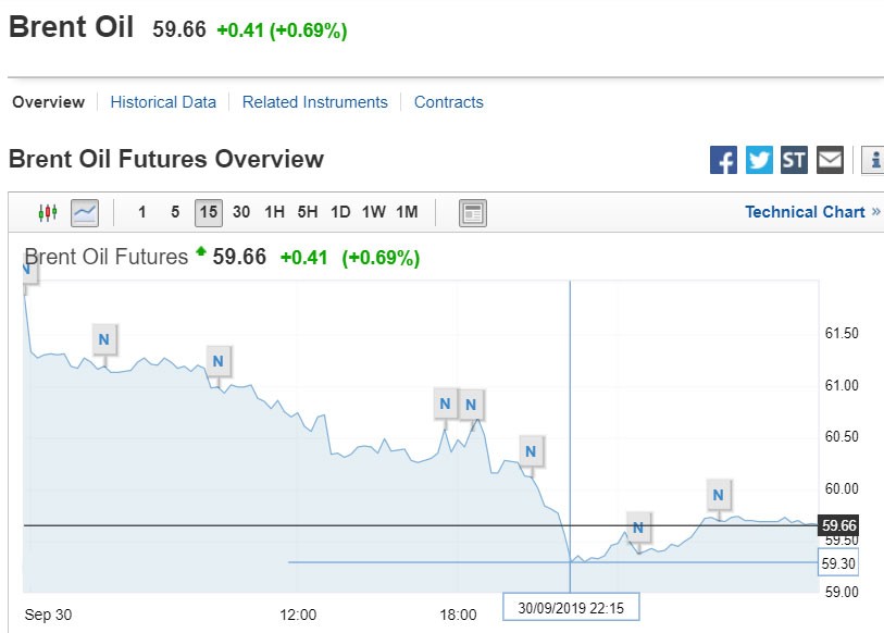 Bu gecə Brent nefti 2%-dən çox ucuzlaşaraq barelinin qiyməti 59,66 dollara geriləyib.
