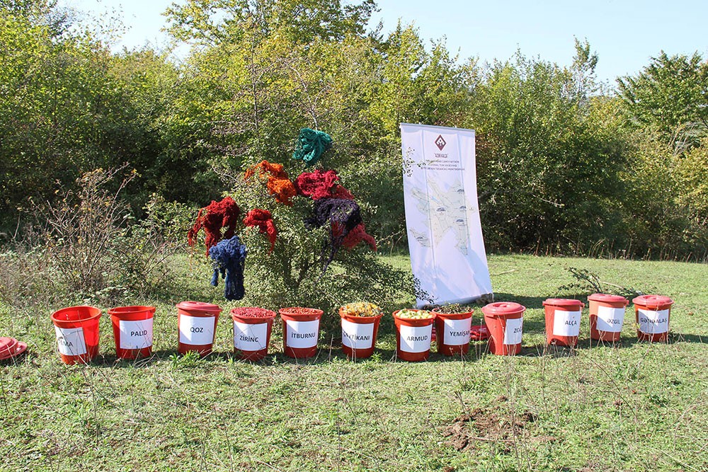 Sonra bu ərazidəki meşədə yabanı halda bitən zoğal, zirinc, qoz, yemişan, əzgil, itburnu, çaytikanı, alça, armud, alma, palıd, gəndəlaş toplanıb, bu boyaq bitkilərindən hansı rənglərin alındığı barədə ətraflı məlumat verilib. Boyaq bitkilərinin təbiətə zərər vurmadan necə toplanması əyani şəkildə tədbir iştirakçılarına izah edilib.