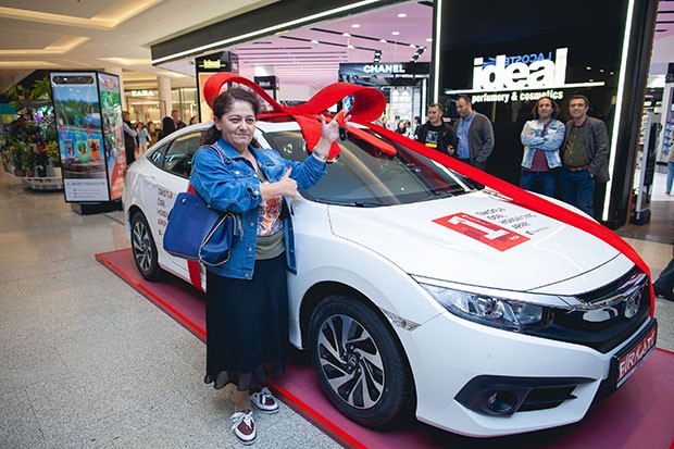 Lotereya zamanı qaliblə canlı telefon bağlantısı yaradıldı, reklam kampaniyasının siması olan, tədbirdə iştirak edən müğənni Rauf ona avtomobil qazandığını dedi və Gənclik Mall-a dəvət etdi. Bakı sakini Xəyalə Allahverdiyeva ticarət mərkəzinə gəldi və canlı yayımda avtomobil ona təqdim olundu.