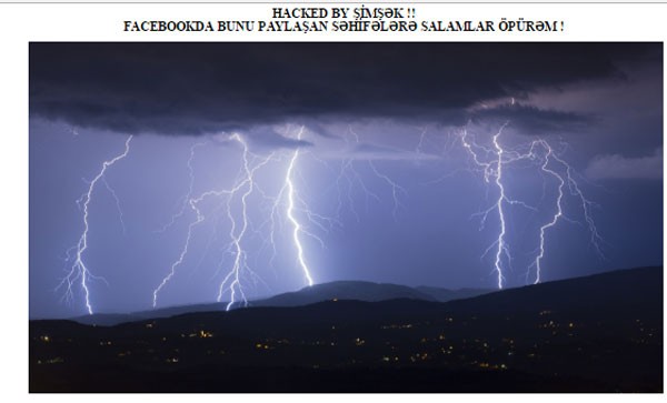 Hakerlər saytda bu mətni yerləşdirib: "HAKCED BY ŞİMŞƏK ! MUĞANBANKI VURMAYAN BİR ŞİMŞƏK QALMIŞDI ODA VURDU! BOoOoOm!"