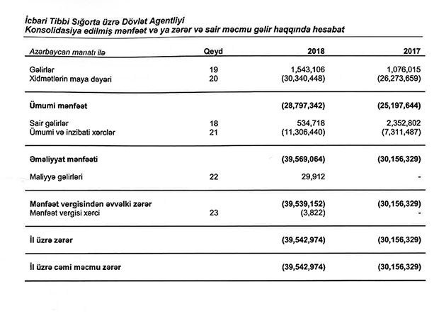 Nazirlər Kabineti yanında İcbari Tibbi Sığorta üzrə Dövlət Agentliyi (İTSDA) 2018-ci ili 39 milyon 543 miln manat xalis zərərlə başa vurub. Bununla da, Agentliyin bölüşdürülməmiş zərəri 2,3 dəfə artaraq 70 milyon 32 milyon manata çatıb.