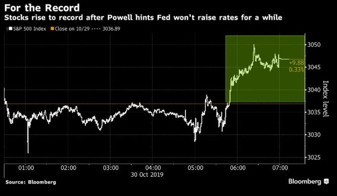 S&P 500 İndeksi, Fed sədri Jerome Powell-in, "inflyasiyanın inadçı şəkildə zəif qaldığı müddətcə faiz artırmayacaqlarını" söyləməsindən sonra kəskin bir şəkildə yüksəlib.