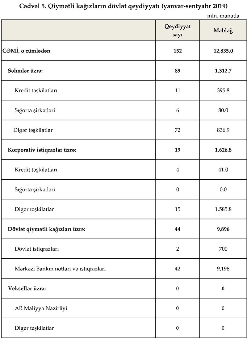 Ümumilikdə 9 ay ərzində Palata tərəfindən 1 milyard 312 milyon manatlıq 89 səhm buraxılışı dövlət qeydiyyatına alınıb.