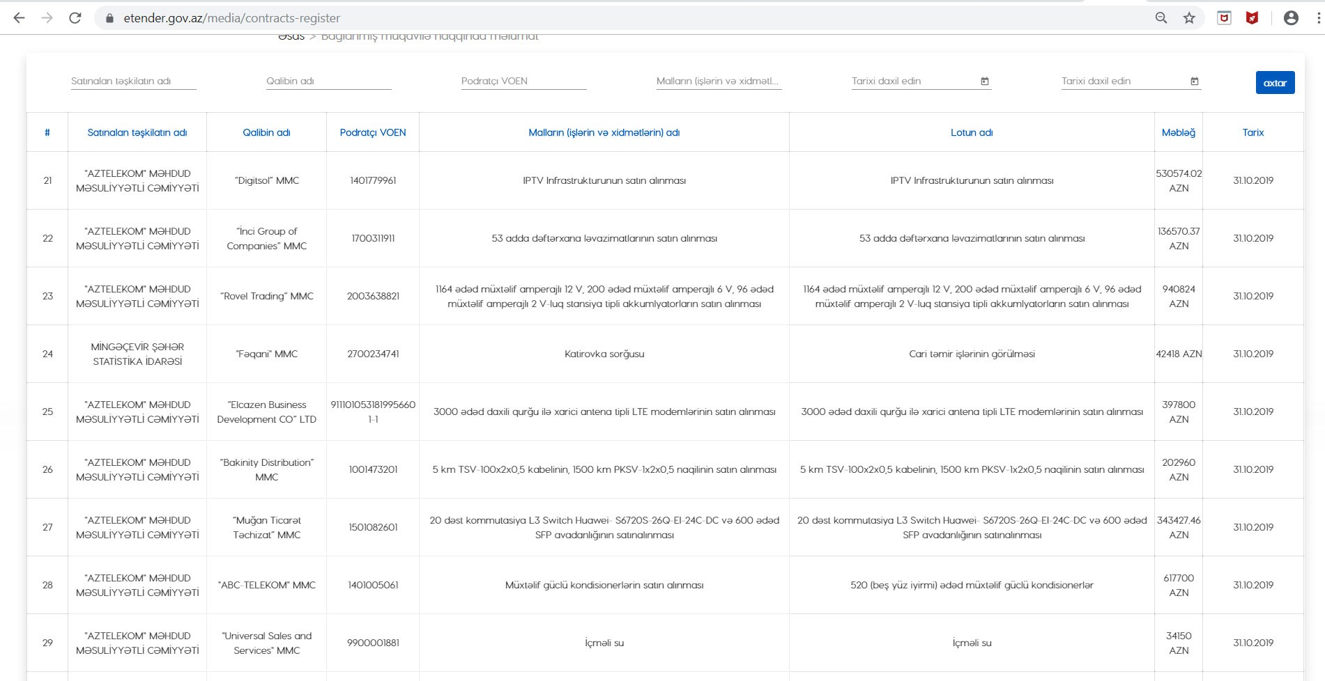 "Marja" xəbər verir ki, "Aztelekom" "ABC-TELEKOM" ilə müqavilə imzalayıb. Müqavilə 520 ədəd müxtəlif güclü kondisionerlərin satın alınmasını nəzrdə tutur. Müqavilənin məbləği 617 min 700 min manatdır.